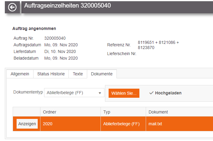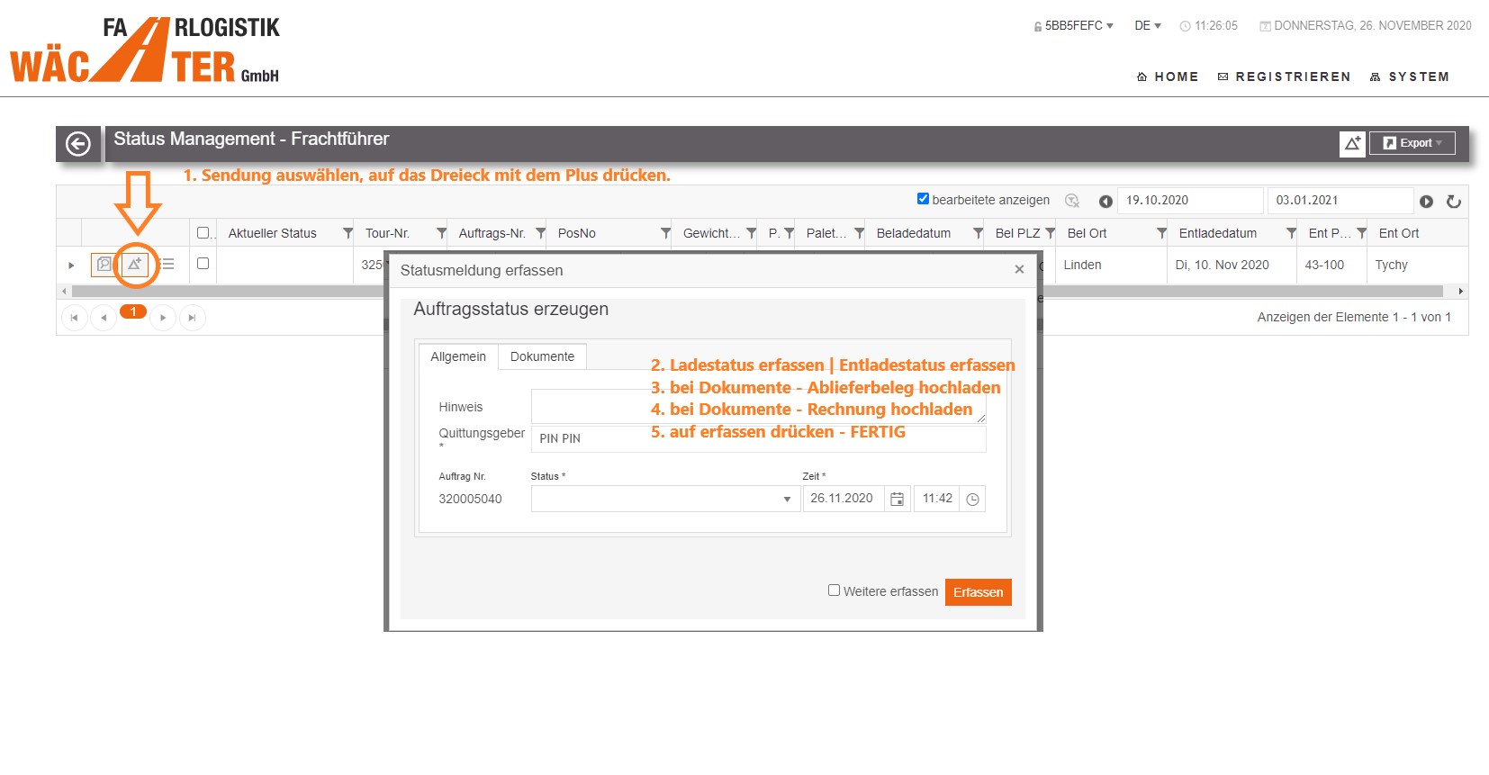 Anleitung Statusrückmeldungen & Dokumentenupload (Ablieferbelege, CMR, Palettenscheine, Rechnung) bei FLW